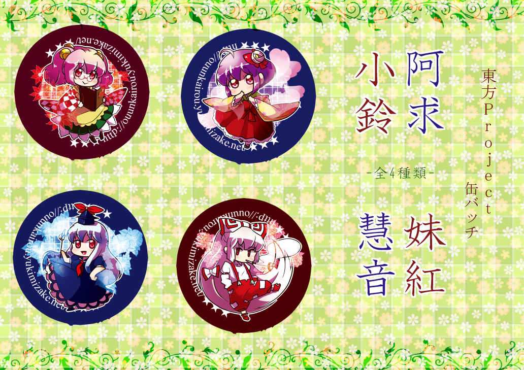 御阿礼祭では、小さい阿求とゆかいな仲間たちの四コマ風漫画、阿求&小鈴のつままれキーホルダー、阿求・小鈴・慧音・妹紅の缶バッチを各少量ずつ、取り揃えておく予定です。
